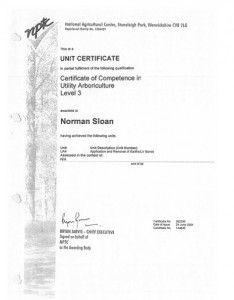 The team at Norrie Sloan Tree Services are all fully certificated. This is a MUST when choosing who you want to carry out work on your trees etc... Please take time to request this when thinking about having work carried out.